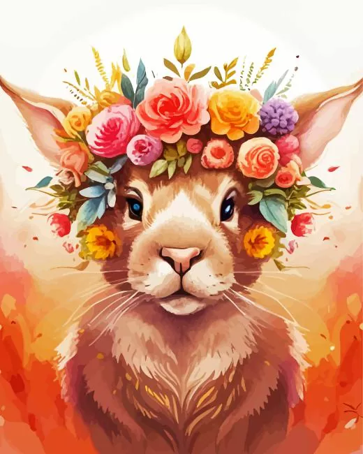 Bunny And Flowers Crown Diamond Painting