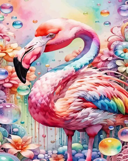 Flamingo Drawing With Flowers Diamond Painting