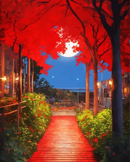 Red Forest Art Diamond Painting